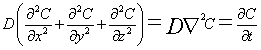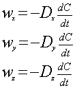 Jest to najbardziej ogólna postać prawa Ficka. Uwzględnia ona zmienność strumieni dyfuzyjnych, jak również zmienność stałej dyfuzji (stała dyfuzji może być funkcją x,y,z oraz stężenia), a także dyfuzję we wszystkich płaszczyznach. Kolejne przekształcenia doprowadzają nas do postaci skróconych i pewnych szczególnych przypadków:
