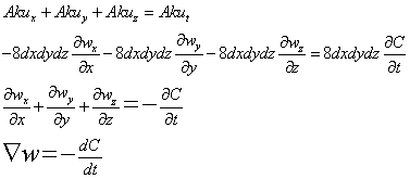 Wynika z tego, że pochodna stężenia po czasie jest proporsjonalna do ujemnego gradientu prędkości masowych po wszystkich wymiarach przestrzennych.
