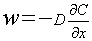 Przez w, rozumiemy prędkość masową dyfuzji w kmol/m^2*s. Prędkość ta jest uniwersalna ponieważ jest niezależna od powierzchni przepływu substancji dyfundujących oraz czasu dyfuzji. Ponieważ posługujemy się różniczkową prędkością masową, jej zmiana w czasie praktycznie nie następuje. Prędkość ta wymnożona przez powierzchnie dyfuzyjną będzie miała wymiar strumienia molowego, a w zasadzie molowego strumienia dyfuzji.
